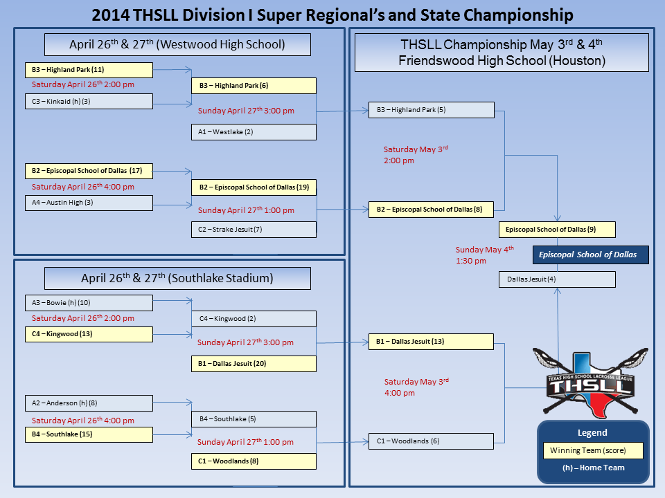 | 04/27 | Episcopal School of Dallas vs Strake Jesuit | DI Super Regionals | Episcopal School of Dallas | 19-7 |