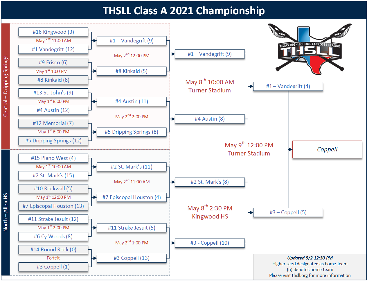 | 05/02 | Strake Jesuit vs Coppell | Class A Super Regionals | Coppell | 5-13 |