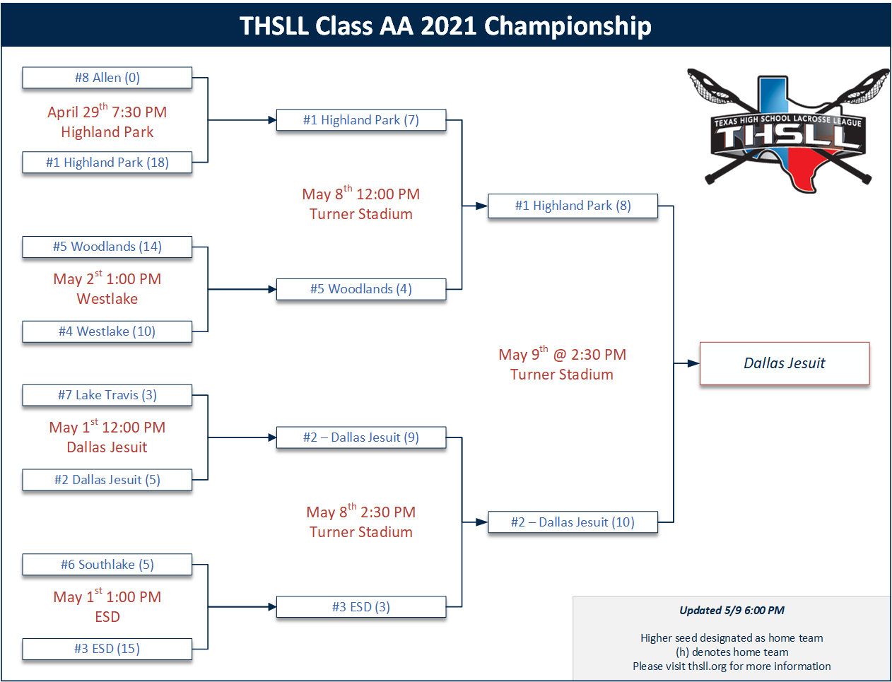| 05/09 | Dallas Jesuit vs Highland Park | Class AA State Championship | Dallas Jesuit | 10-8 |